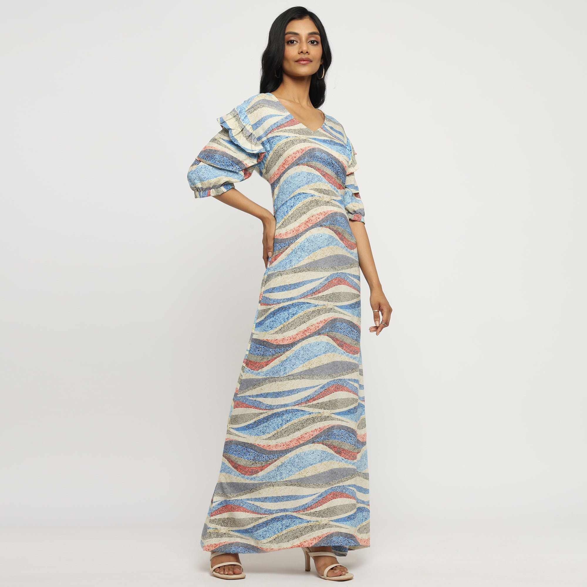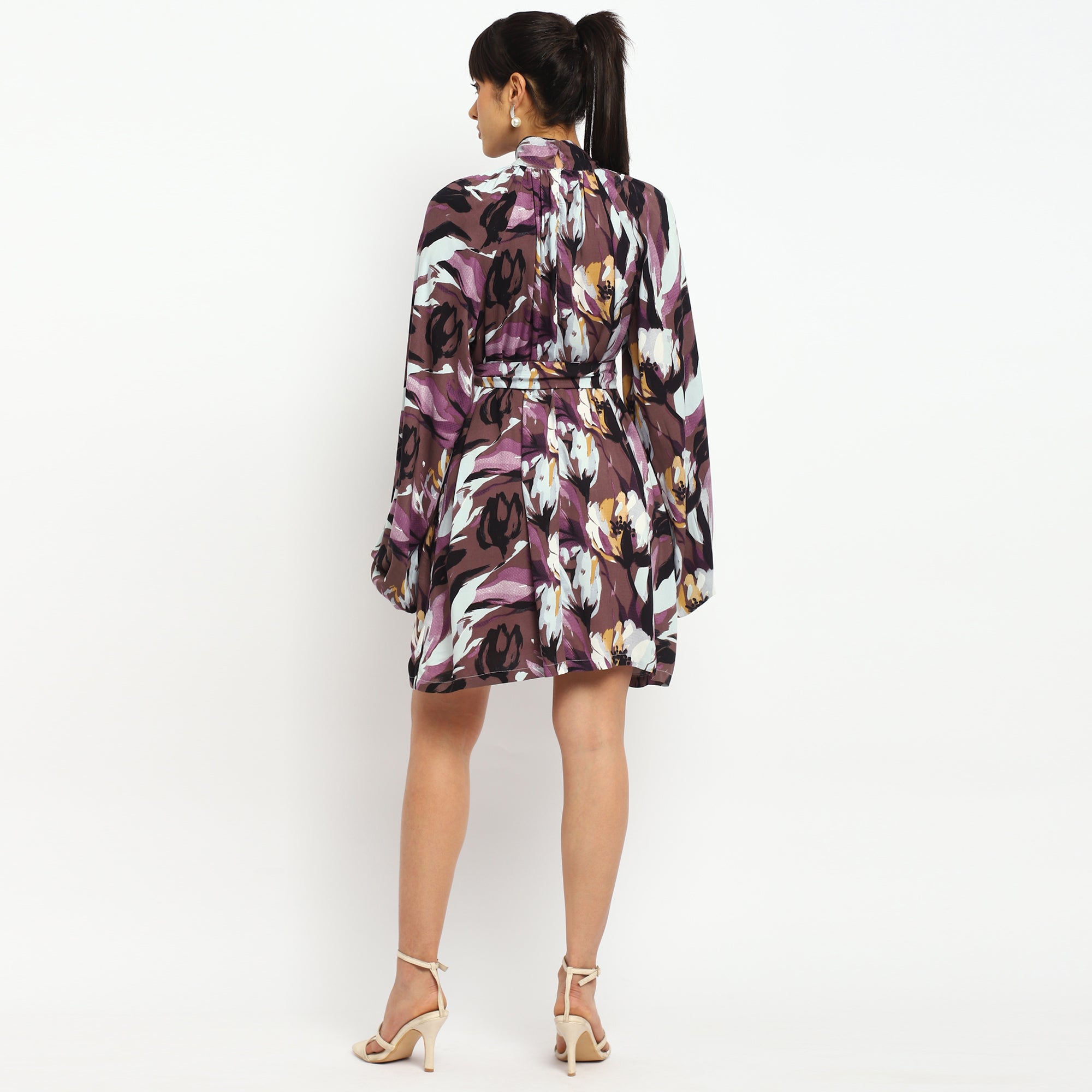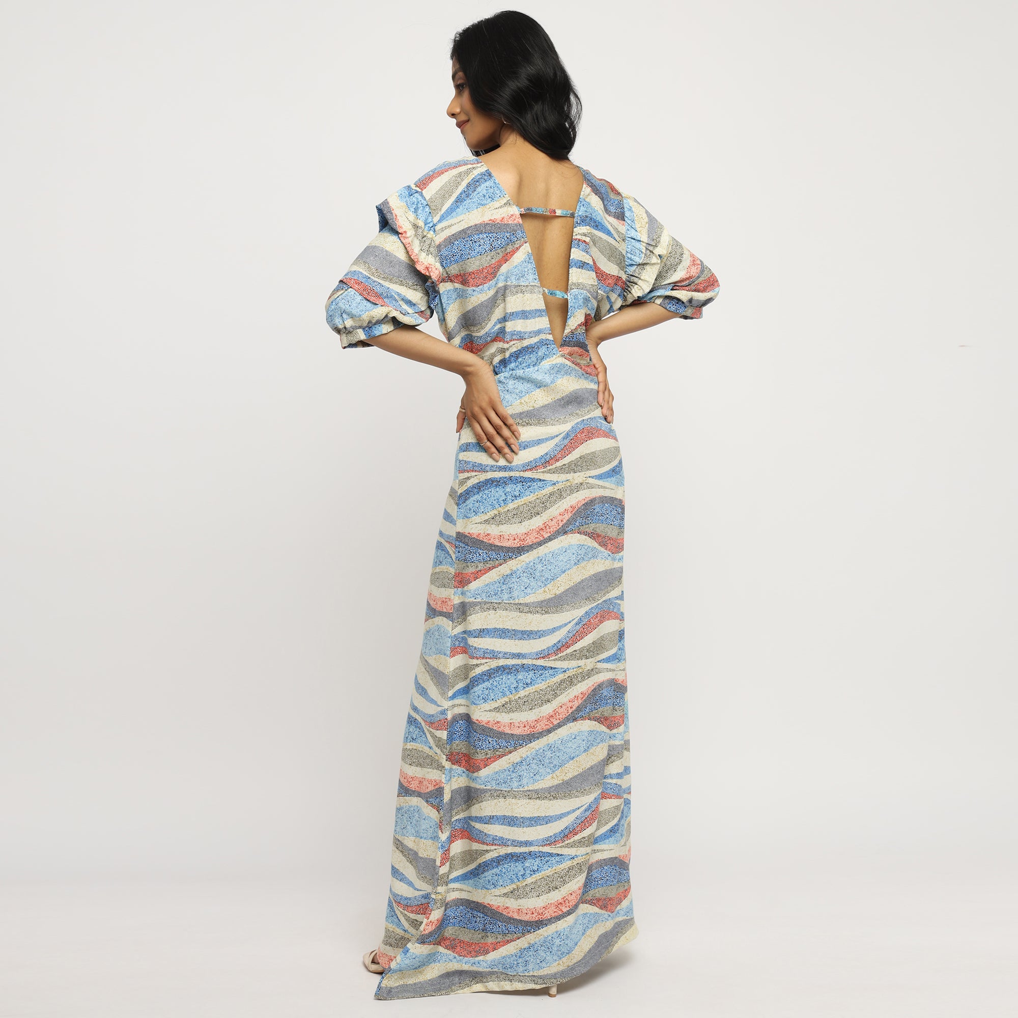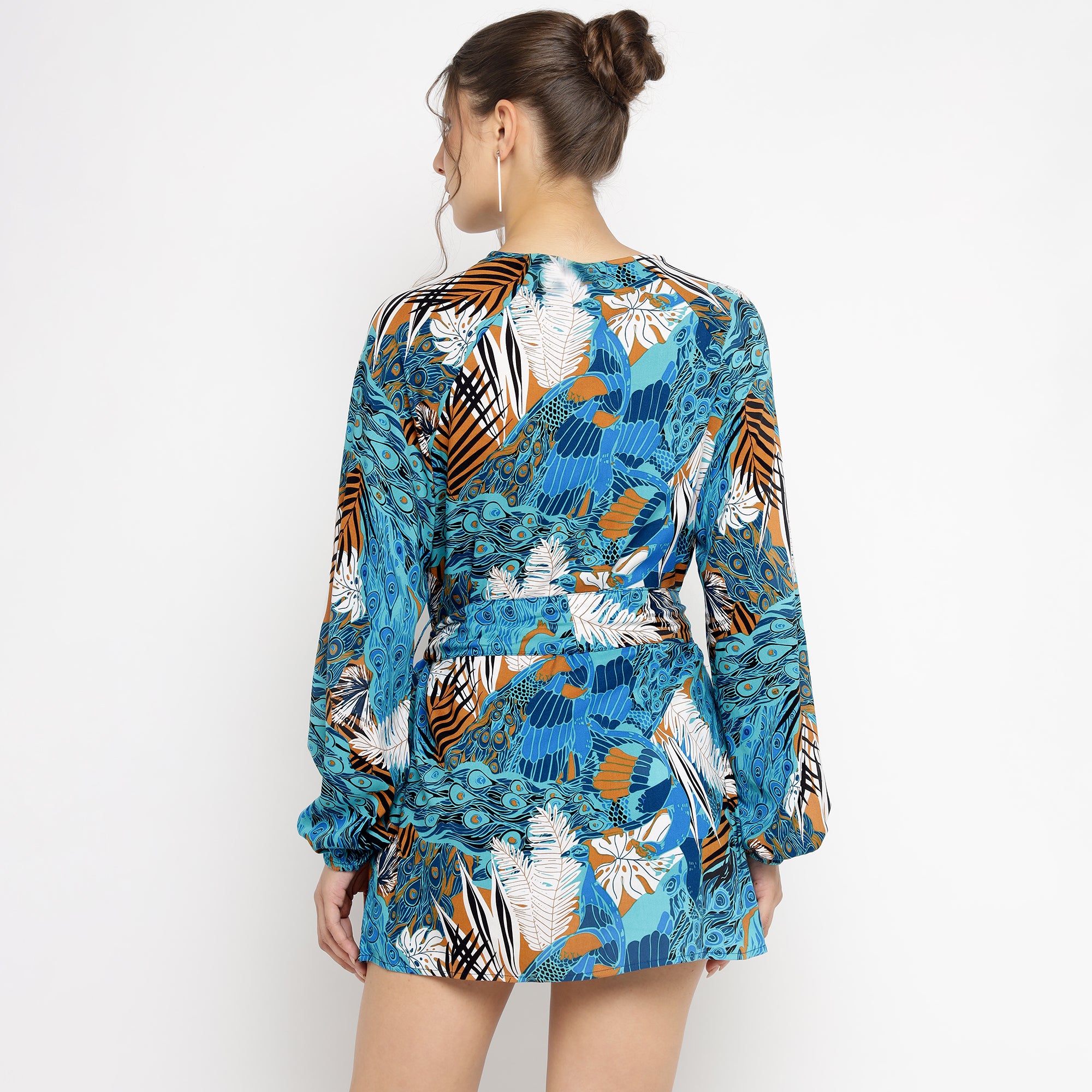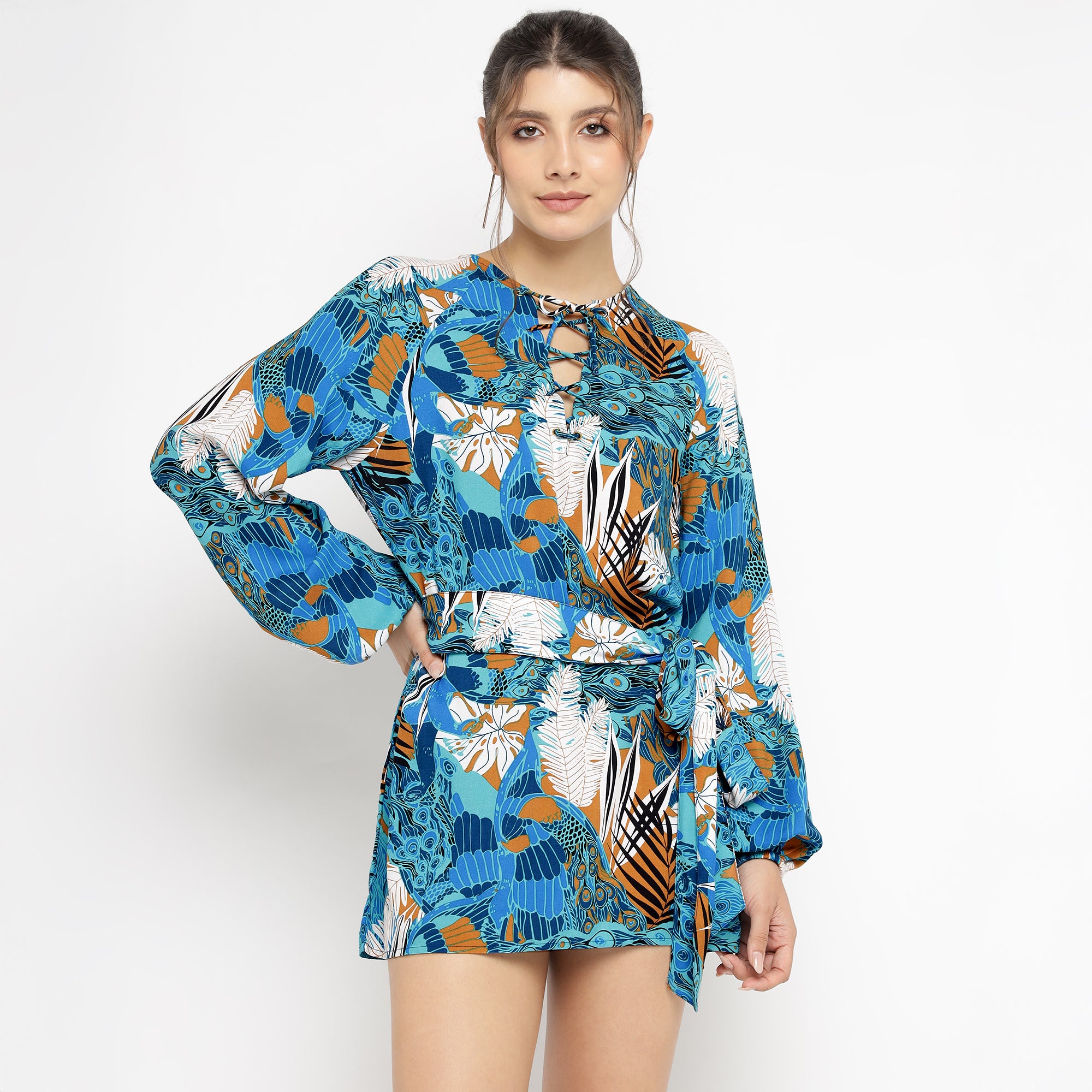 Blue & White Watercolor Printed Belted Blazer Co-ord Set