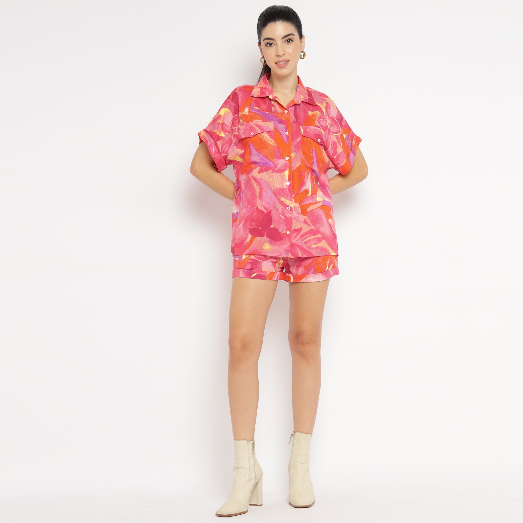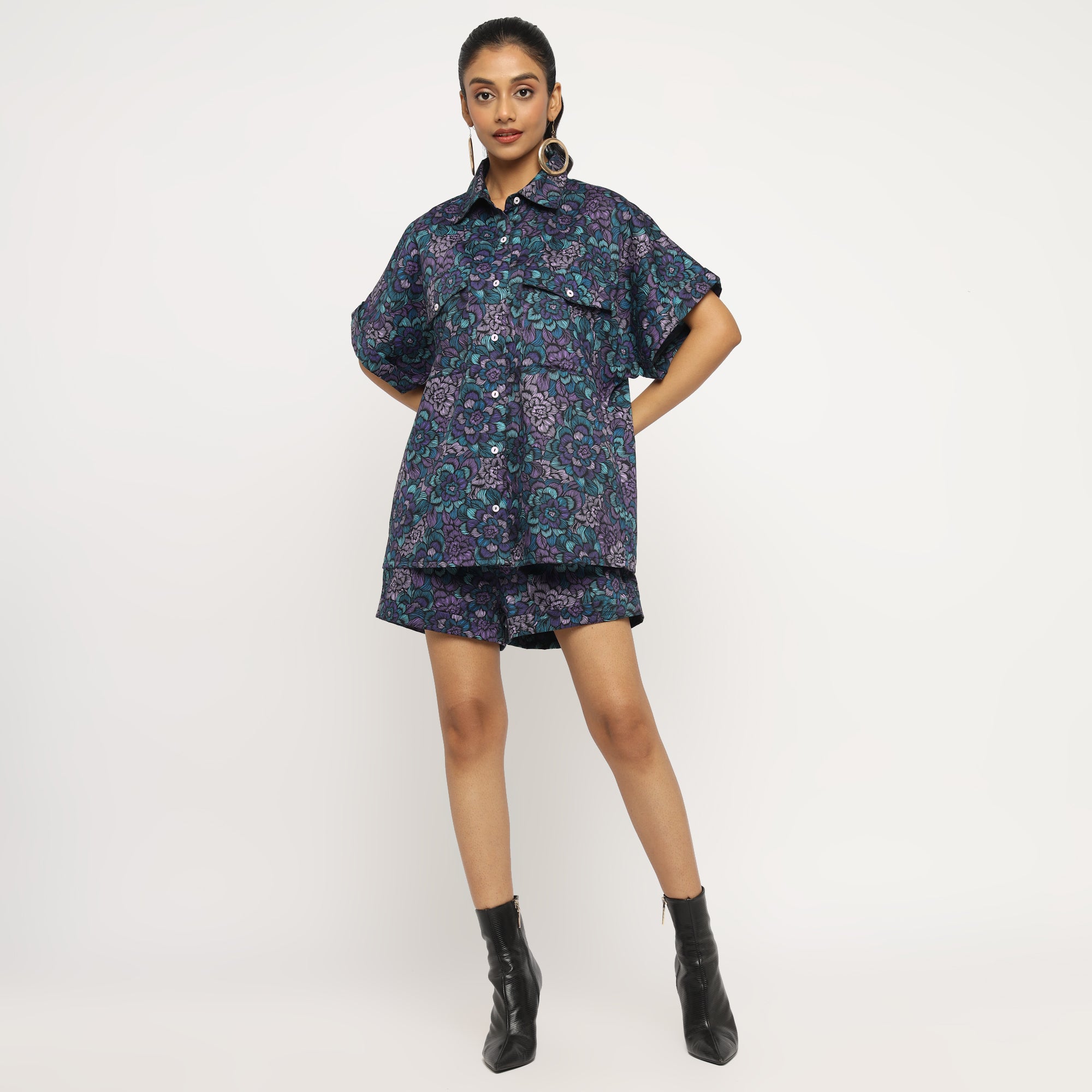 Floral Co-ord Set Oversized Shirt & Shorts
