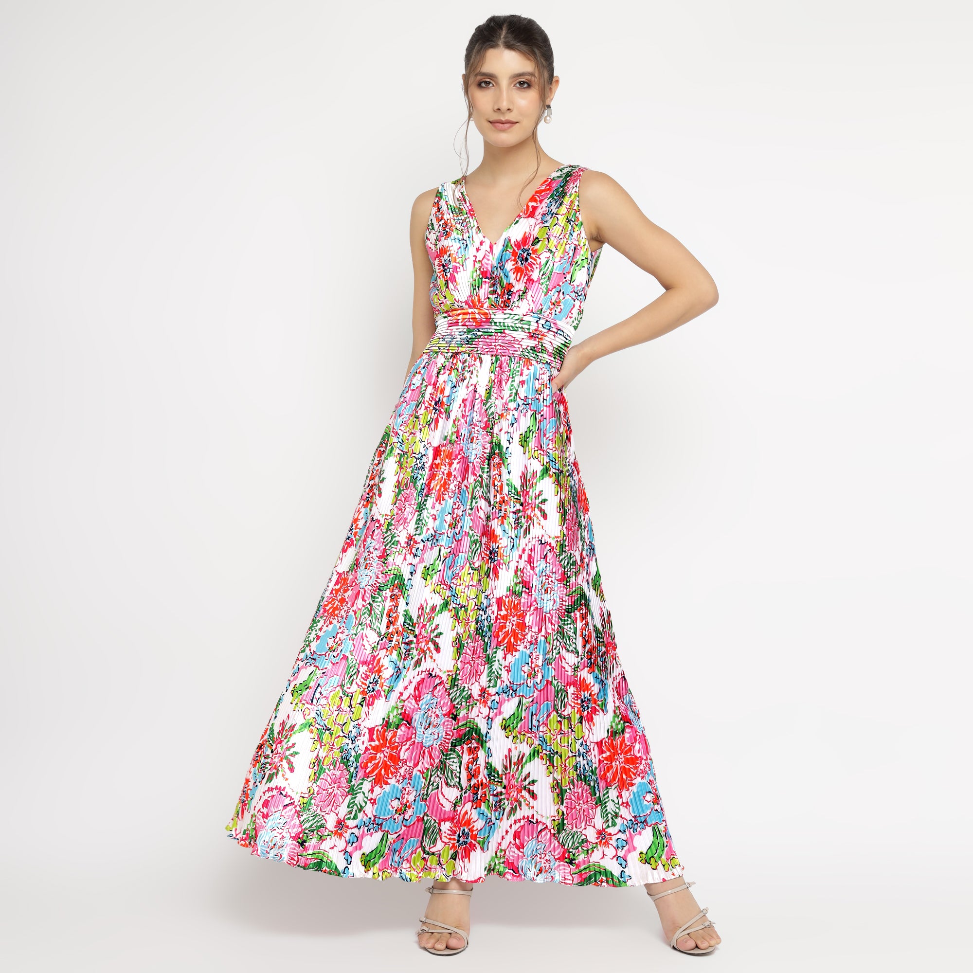 Vibrant Floral Smocked Maxi Dress with Sweetheart Neckline