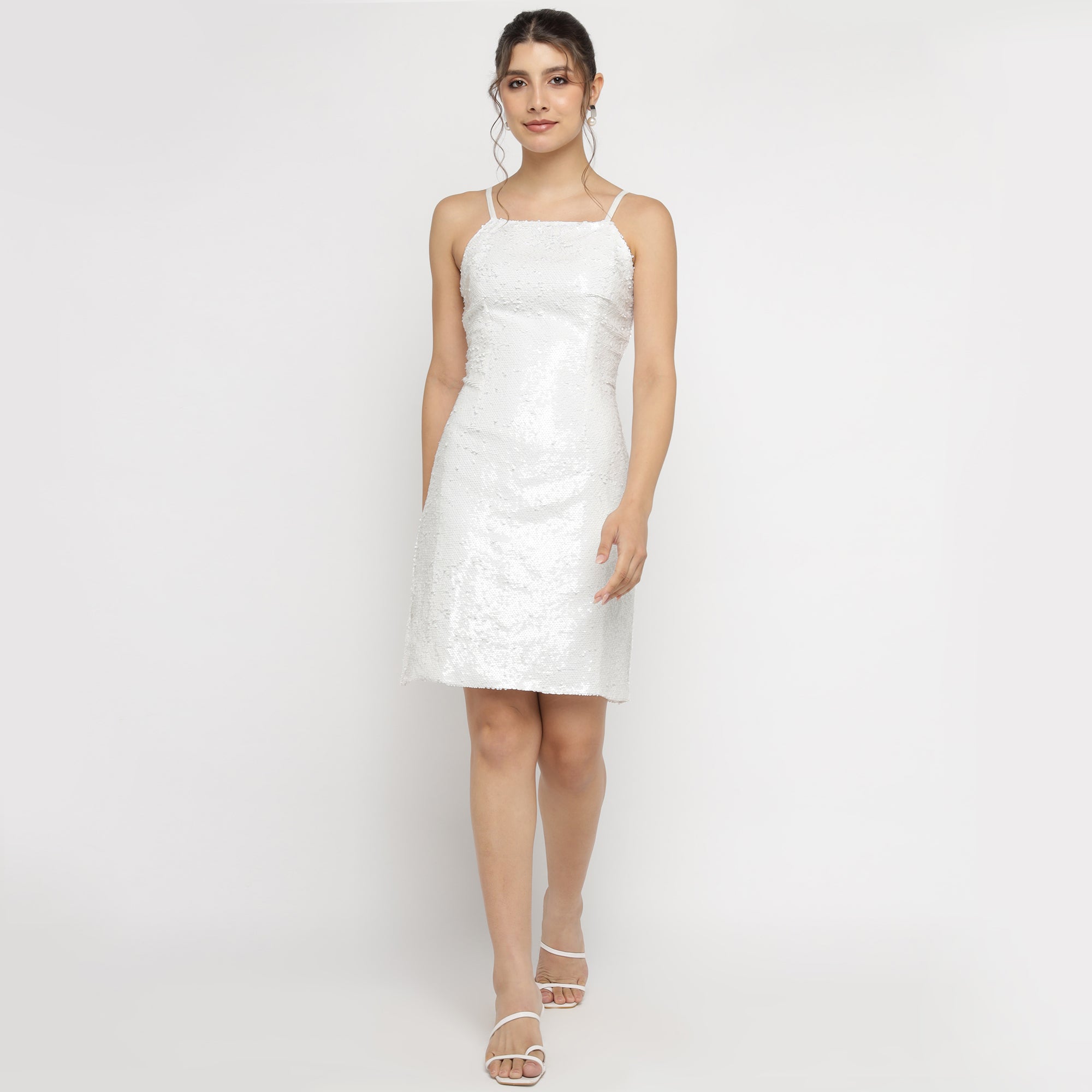 White Embellished Sequin Co-ord Set with Bow-Tie Strap Top