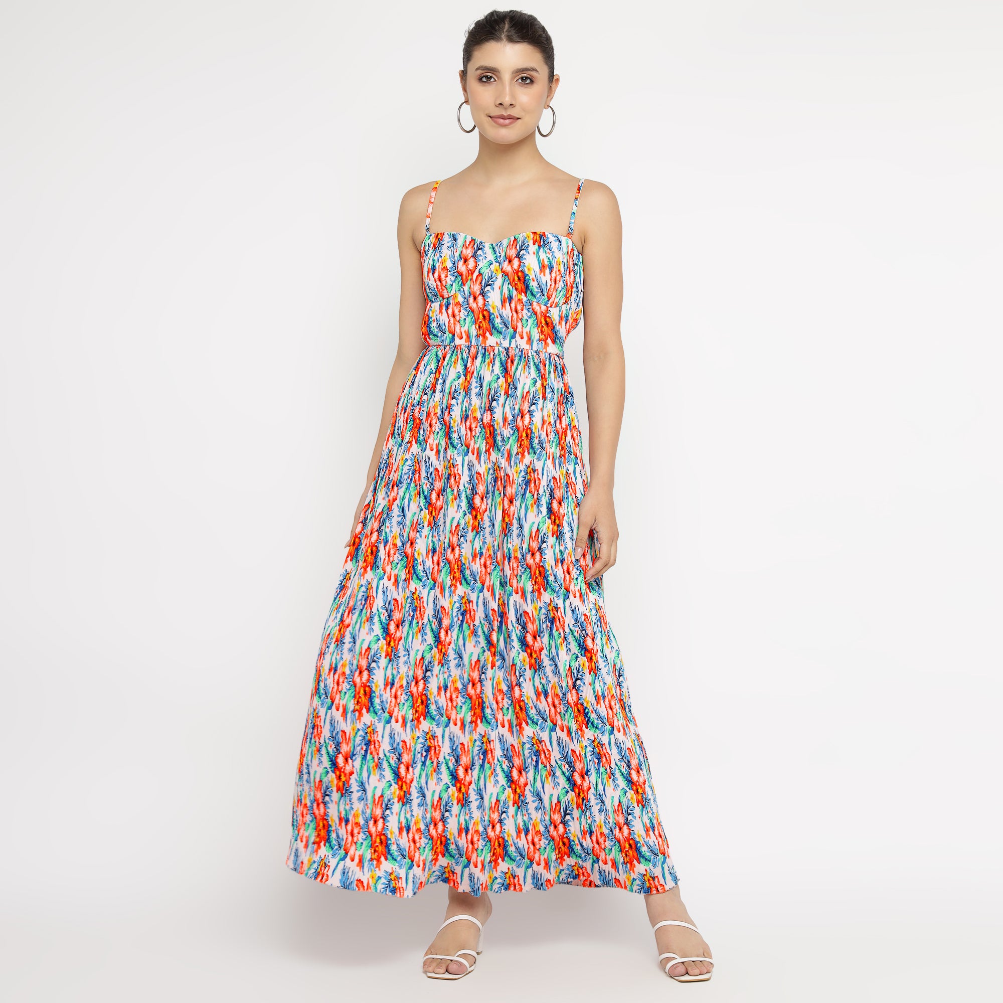 Tropical Rhapsody Cold-Shoulder Maxi Dress