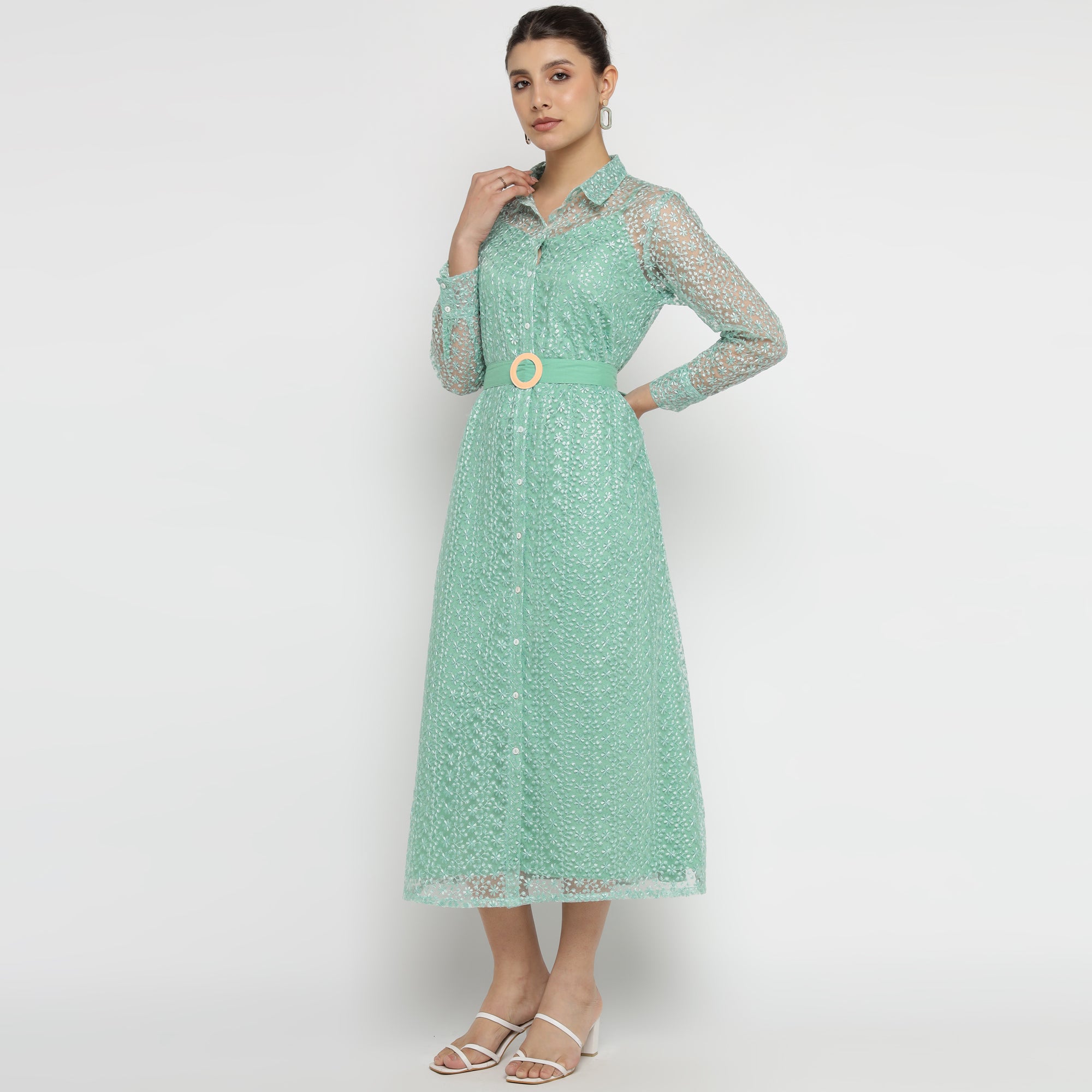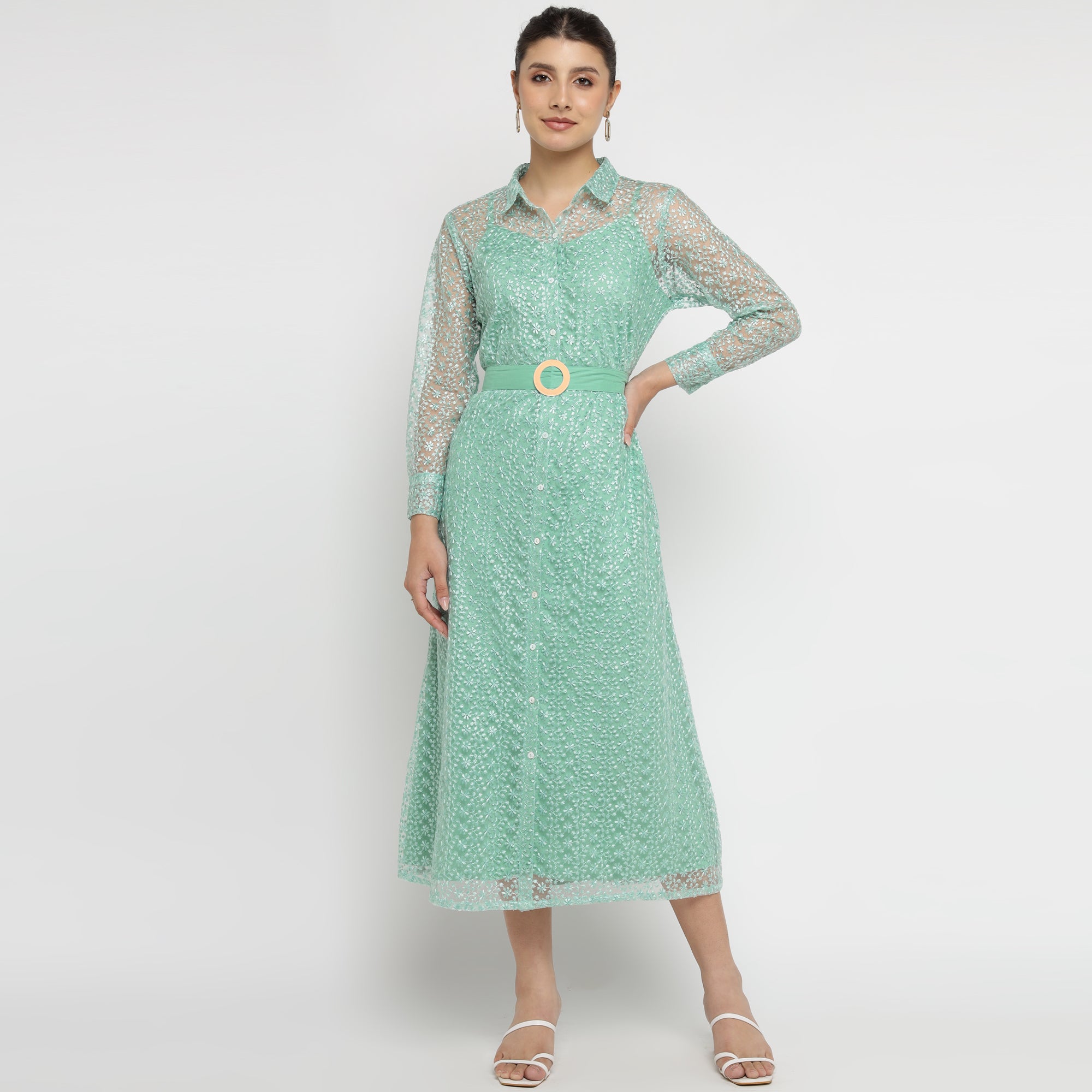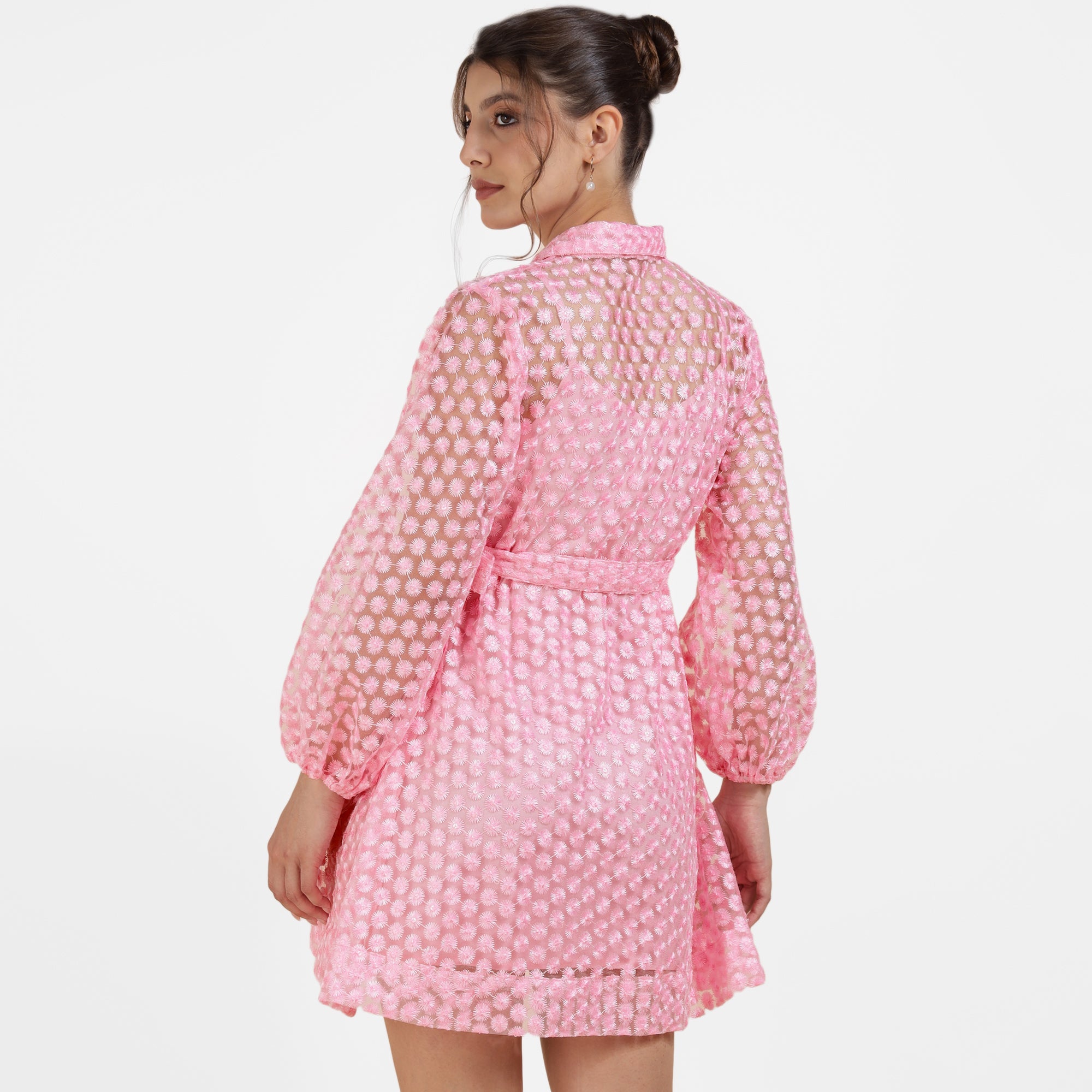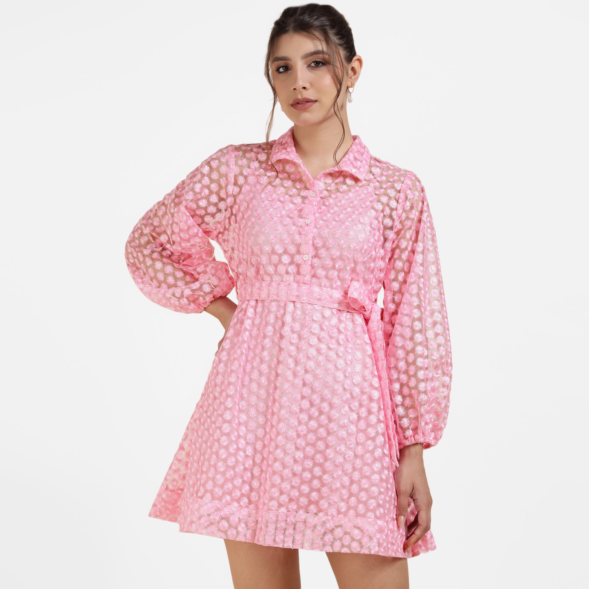 Sheer Embroidered Shirt Collar Mini Dress – Blush Pink