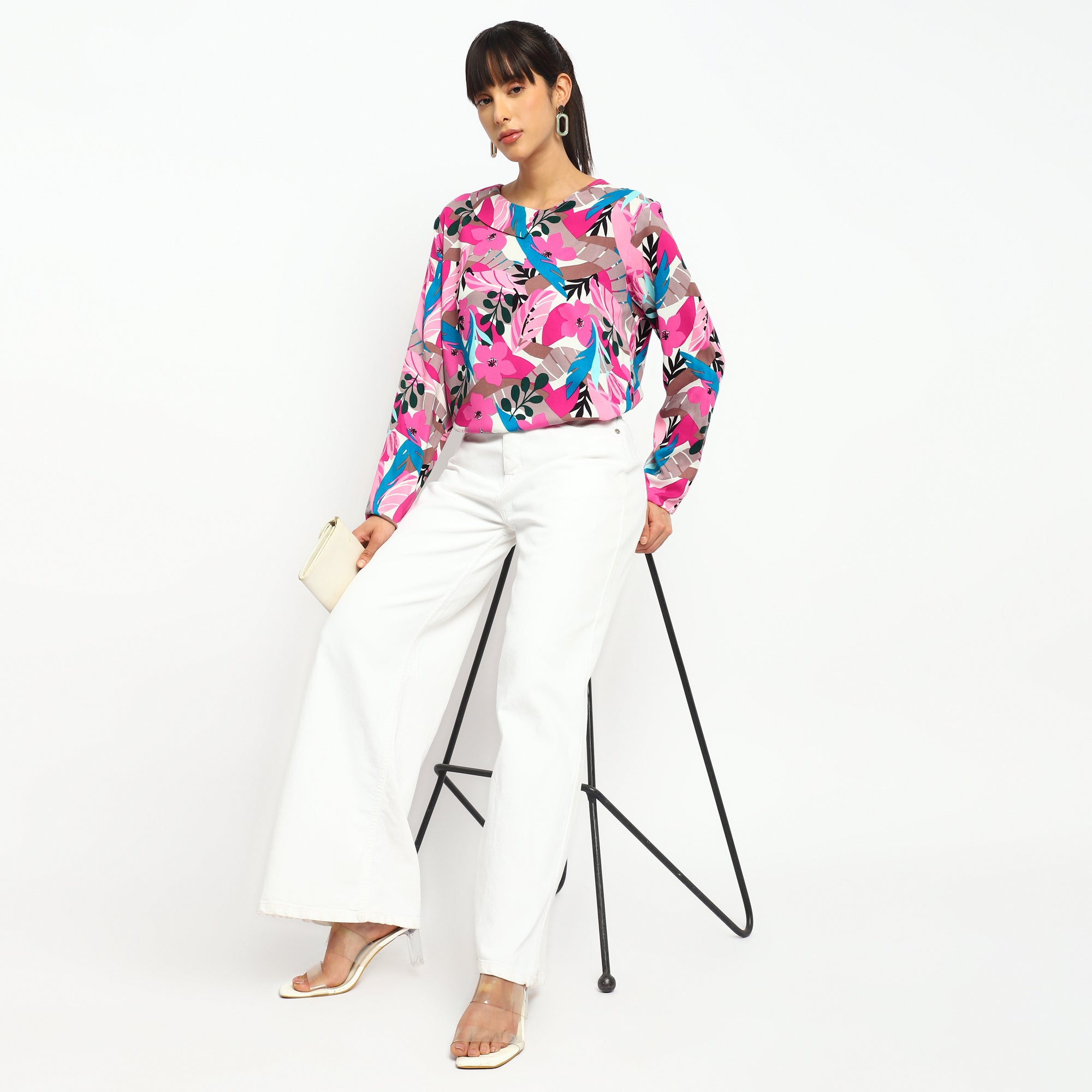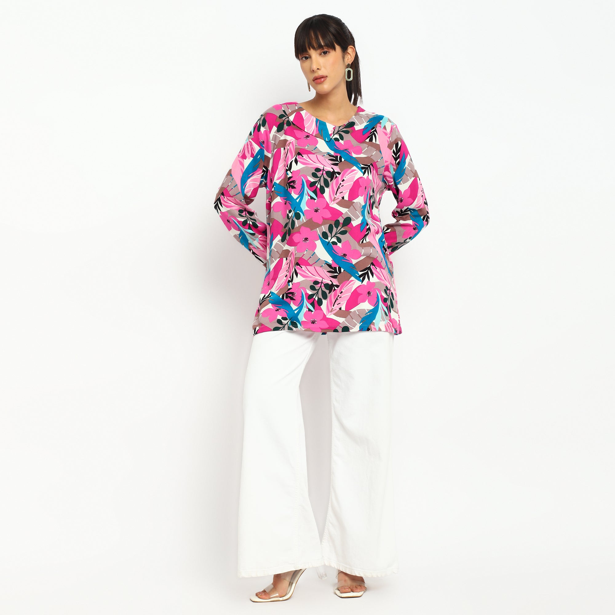 Vibrant Pink Floral Printed Tunic Top