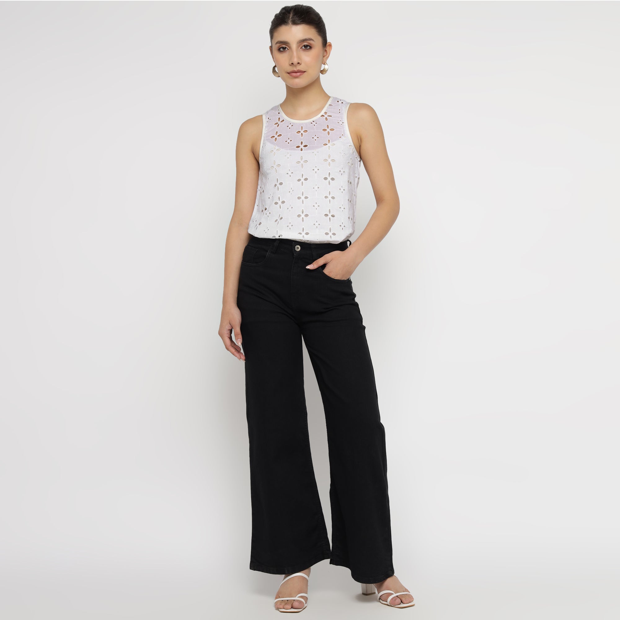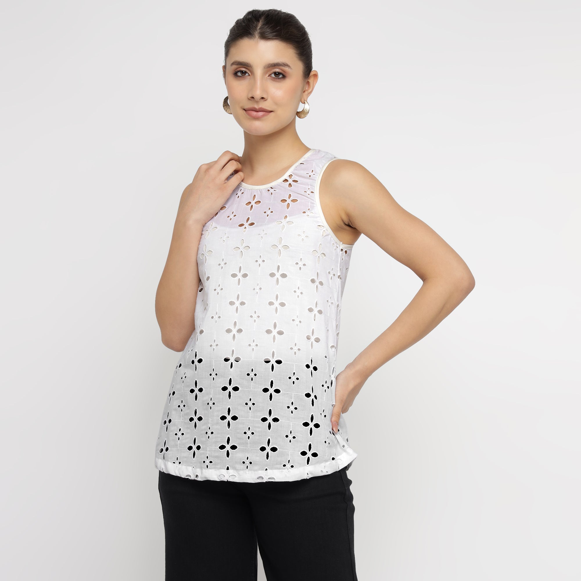 White Cotton Broderie Anglaise Sleeveless Top